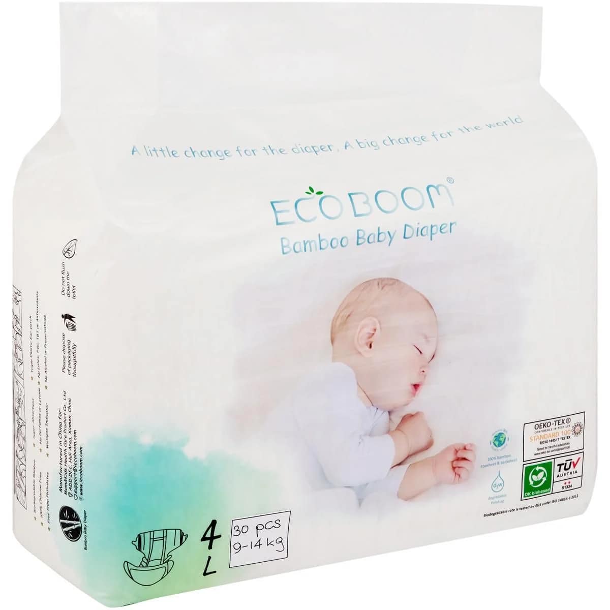 Eco boom luxuriously silky biodegradable chemical-free baby diapers eco boom baby diapers are free of chemicals, dye, plastic, chlorine, latex, and fragrance. Only natural organic material is what will touch your baby’s skin. Eco boom is free from all nasties including plastic, chlorine, colour, fragrance, alcohol, latex, and phthalates. Eco boom organic bamboo-based biodegradable diapers come in a biodegradable eco-friendly package.