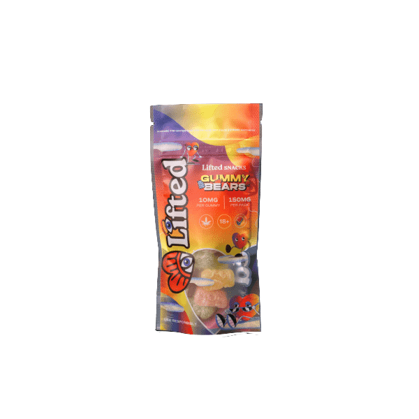 A bag of Rainbow Fruity Flavoured Gummy Bears, dosed to Perfection.